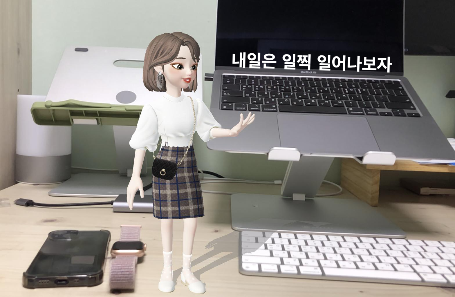 학장님이 돌아오신 것을 보고 나는 마음이 놓여서 다시 잠이 들었지만(??) 내일은 다시 성실히 들어야겠다. 참 비싼 습관이다. 정말 들이기 어려운 습관 미라클 모닝.. 일찍 자아만 가능한데 이 스텐스를 놓치지 말고 또 딱 14일만 잘 버텨봐야겠다. 그리고 아침 시간 날린 것이 아쉬워서 제페토로 AR카메라로 찍어보았다. 저걸로 아침 인증을 하면 좋겠다는 아이디어가 생각났다.