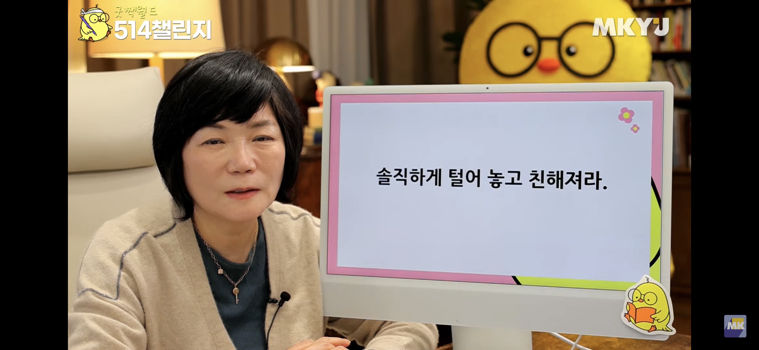 미경아 높은 곳에서 어려운 말을 쓰면 알아들을 수 있는 사람이 없는 거야. 꼭대기에서 말할수록 듣는 척만 하지 들을 수 있는 사람이 없는 거다. 낮은 데서 말할 수록 많은 사람이 공감하는 거다. 가끔 웃겨주고 힐링주는 사람들은 많지만 1만 명에게 공부하라고 계속 얘기해주는 사람은 김미경 너밖에 없어로 우겨주신 아버지.