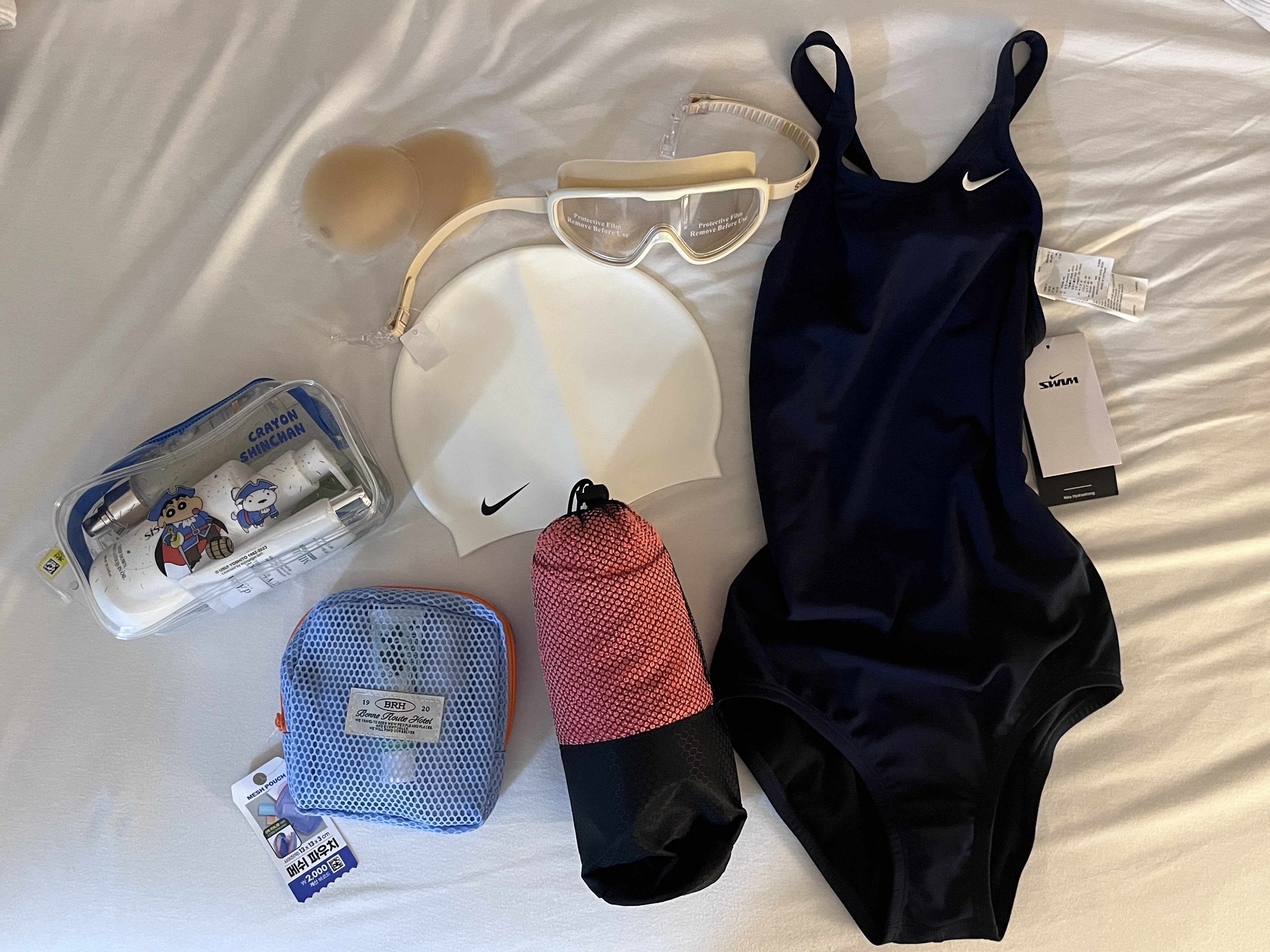 - 패드 - 수영할 때 실제로 사용하는 사람도 있고 수영복이 어두워서 티가 잘 안 나면 안 쓰는 사람도 있다고 한다. 혹시 모르니 챙겼다.