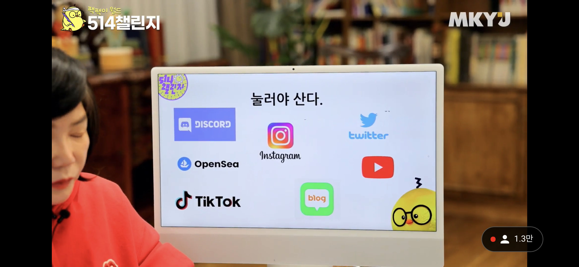 제발 눌러라. 이 부분이 정말 웃겼다. 누르는 걸 무서워하면 미래 사회에 적응할 수 없다. 디스코드, OPENSEA 나도 아직 접해보지 않은 플랫폼인데 김미경 선생님은 벌써 눌러보고 계셨다.