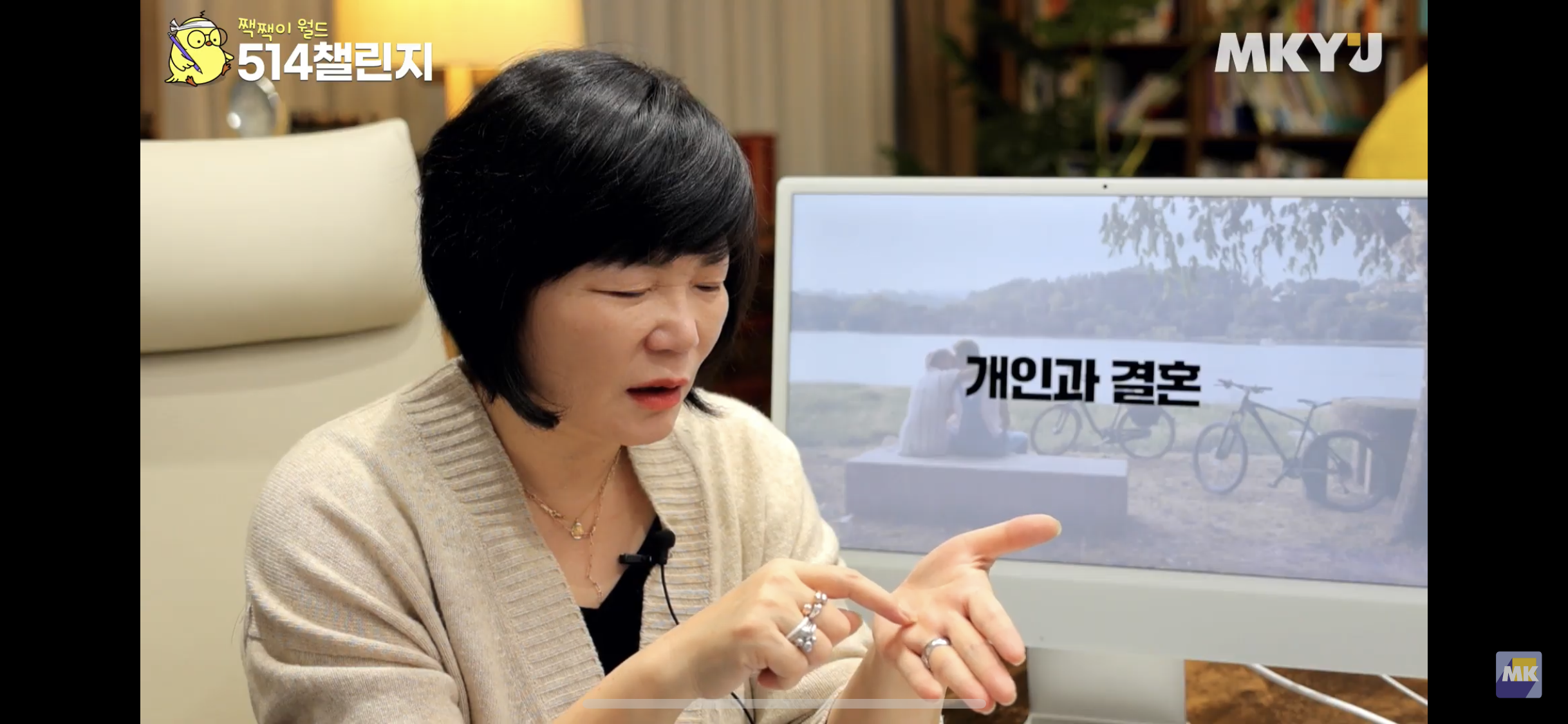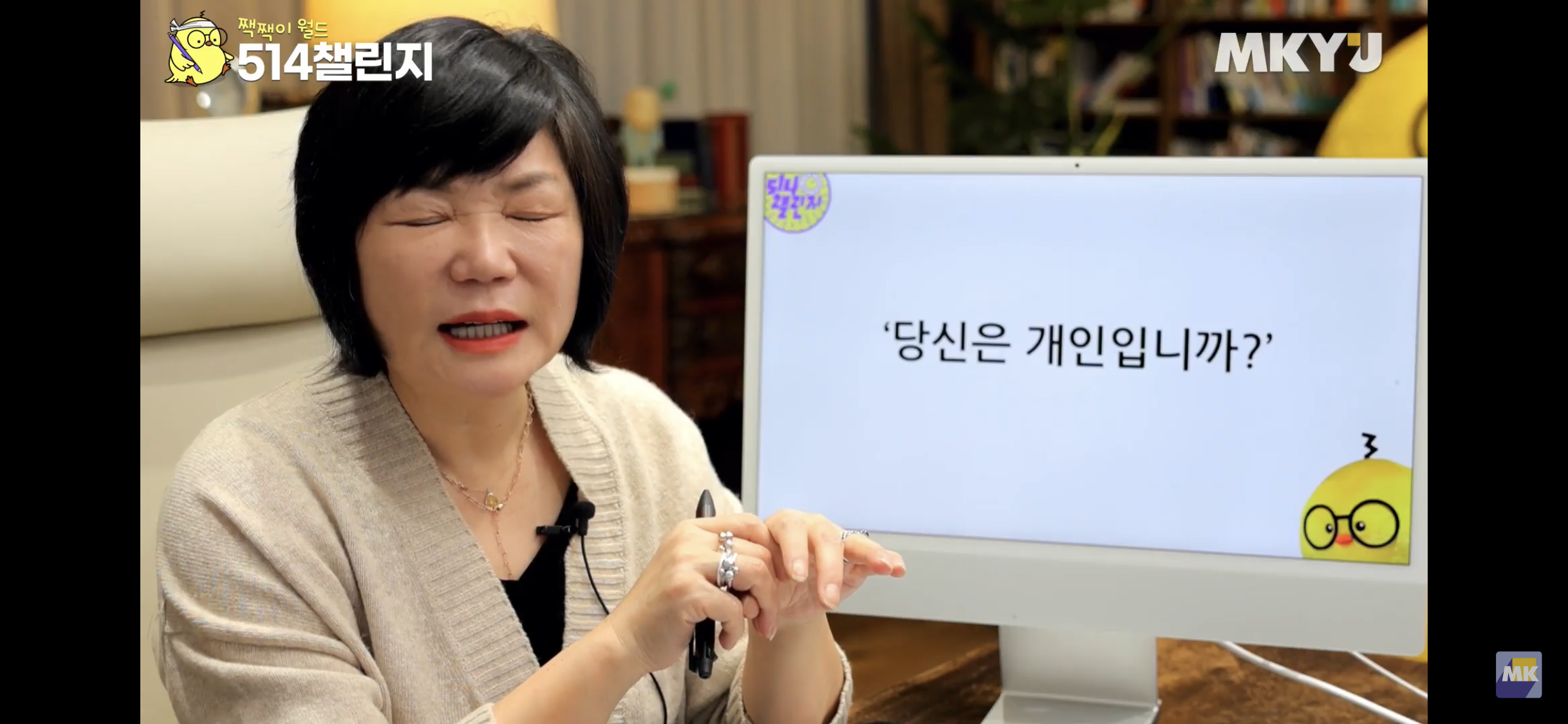 - 김미경 선생님은 26살, 27살에 개인이 뭐지 질문을 할 겨를도 없이 결혼을 했다. 결혼하고 나니 개인 김미경을 챙기는 사람은 하나도 없었다.