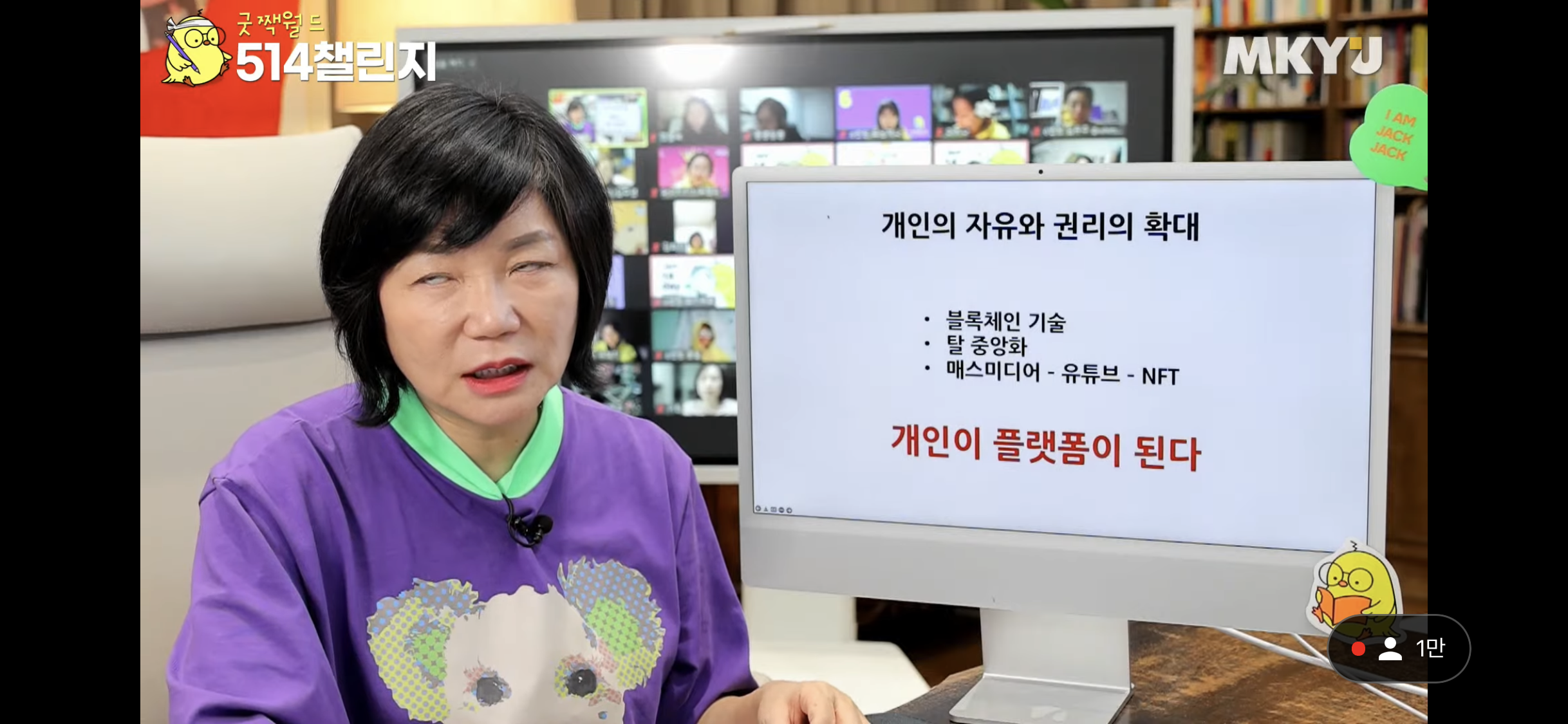 방송국이 가진 중앙집권을 유튜브가 나눠 가지게 되었다. 개인의 목소리를 내게 되었다. 큰 플랫폼이 가졌던 것을 개인이 다 쪼개서 가져라. 인간의 존재를 위해 테크가 존재한다. 기왕에 세상이 열릴 때 들어가는 사람이 될 것인가 빠지는 사람이 될 것인가. 기왕이면 들어가자. 내가 플랫폼이다. 초반에는 루머도 심하고 유명한 작가들 1만 원 정도 사보기도 하고 관망하자. 아직은 업 앤 다운이 심하다.