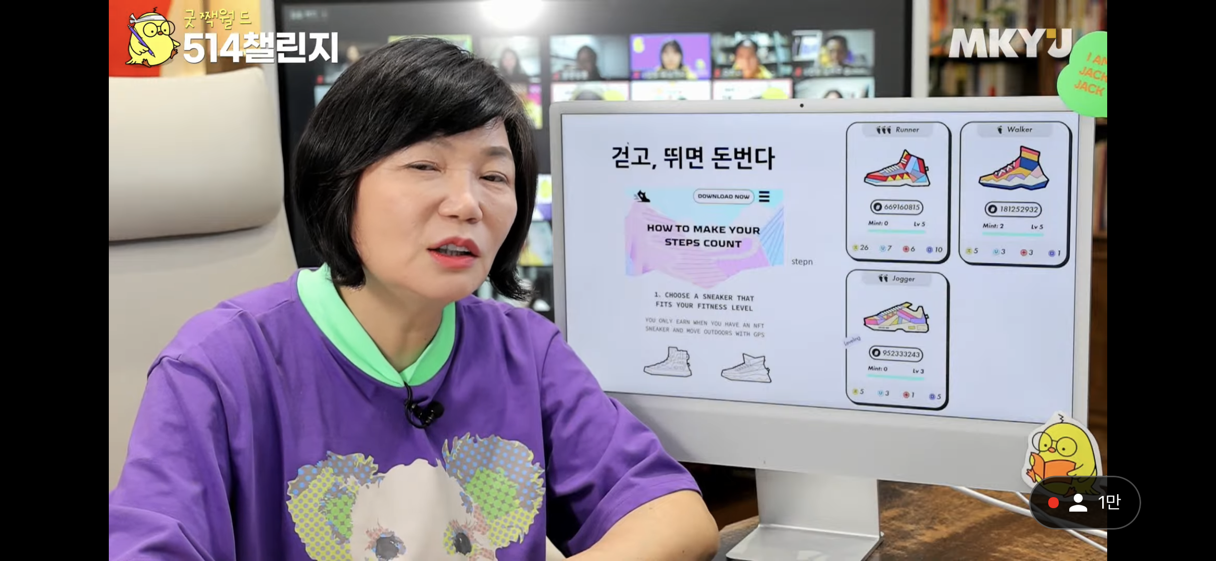 STEPN이라는 프로젝트는 NFT를 사면 소유한 홀더들에게는 운동화를 보내준다. 그걸 받고 뛴다. 걷고 뛰면 돈이 올라간다. 한 달에 100만 원씩도 번다. 실제로 100만 원어치 뛰는 사람은 몇 없겠지만 자부심이 생긴다. 요즘 이런 식으로 창업을 한다. 디지털과 현실이 합쳐진다. NFT프로젝트 재밌는 것들이 많이 나온다.