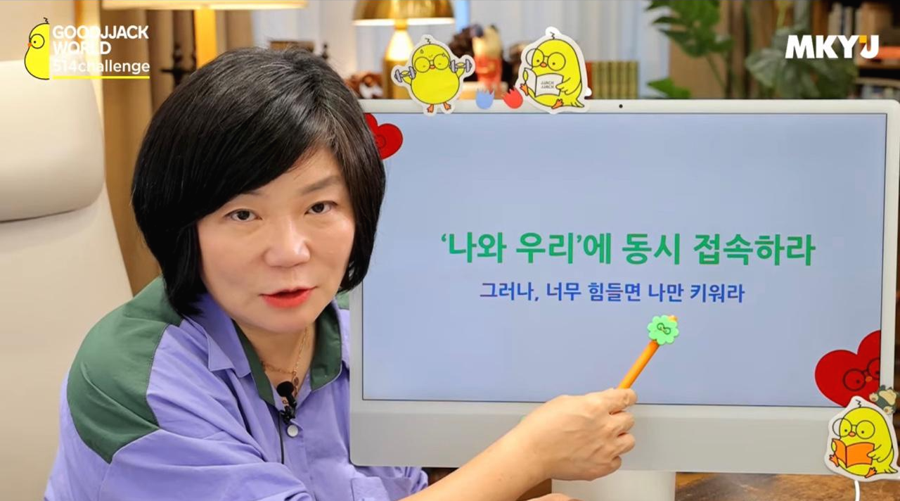 나와 우리에 동시에 접속해보자. 너무 힘들면 나만 키워라. 너무 힘들면 동굴에 들어가서 나를 보듬고 나를 키워서 다시 우리와 접속해라. 나와 우리가 섞이는 게 에너지가 많이 필요하고 때로는 혼자만의 에너지 보충 시간도 필요하다. 24시간 우리 속에 있으면 너무 힘들어지므로 나를 만나는 시간이 필요하다.