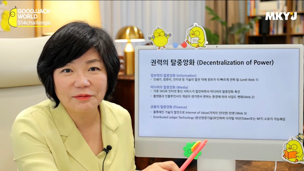 개인을 강화시키려는 기술들이 결국 WEB 3.0까지 이끌어 내었다. WEB 3.0 은 사용자들이 네트워크의 유저이자 오너이다. WEB 3.0에서 디지털 사용자들의 확장과 질 높은 자유를 이끌어준 기술은 블록체인이다. 이제는 사람들이 WEB 3.0에서 돈을 번다. 권력이 탈 중앙화가 된 것이다.