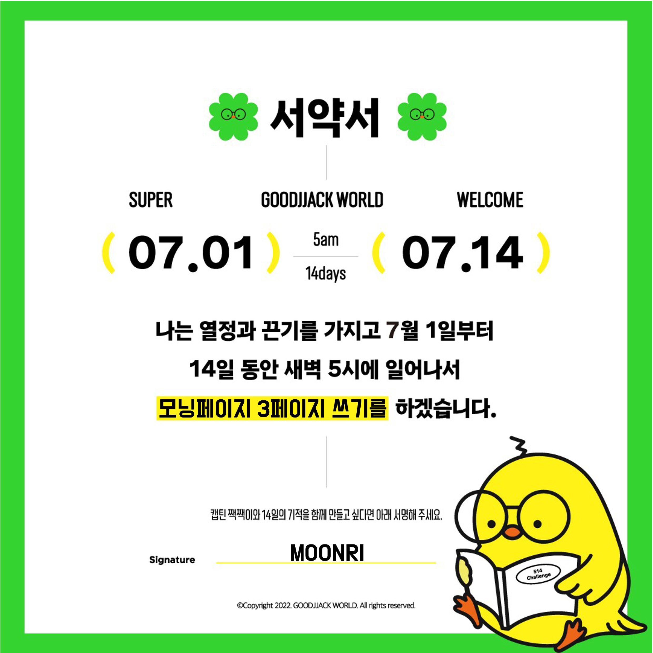 [미라클 모닝 7월 서약서] 새벽 5시 기상하여 모닝페이지 3페이지 쓰기